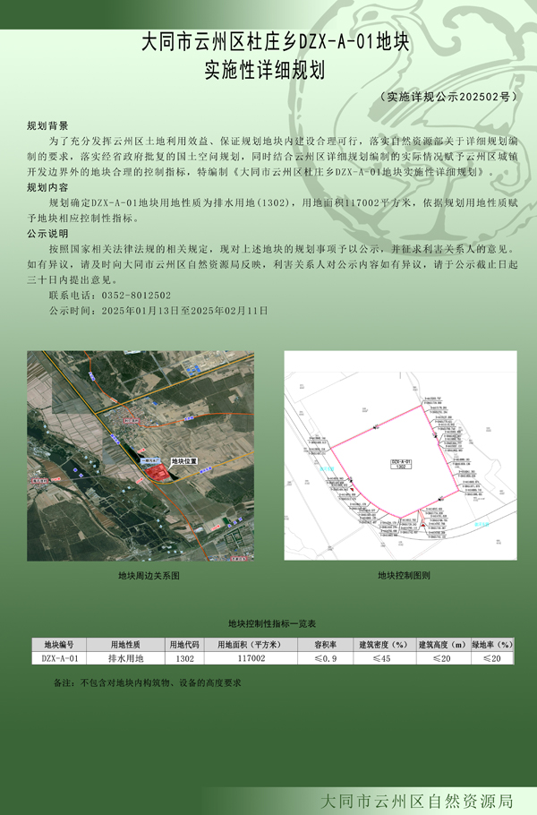 大同市云州區(qū)杜莊鄉(xiāng)DZX-A-01地塊實施性詳細規(guī)劃
