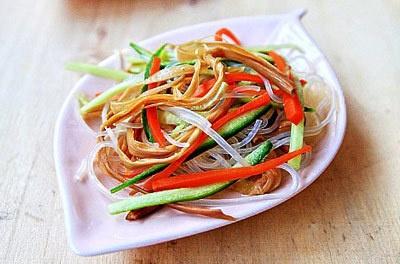 按:此菜是由黃花菜與淀粉制成的粉條相配而成,具有健胃。止血、安神、利尿的功效。適用于 消化不良、食欲不振、肺結核咯血、小便赤澀、尿血、內痔出血等病癥。